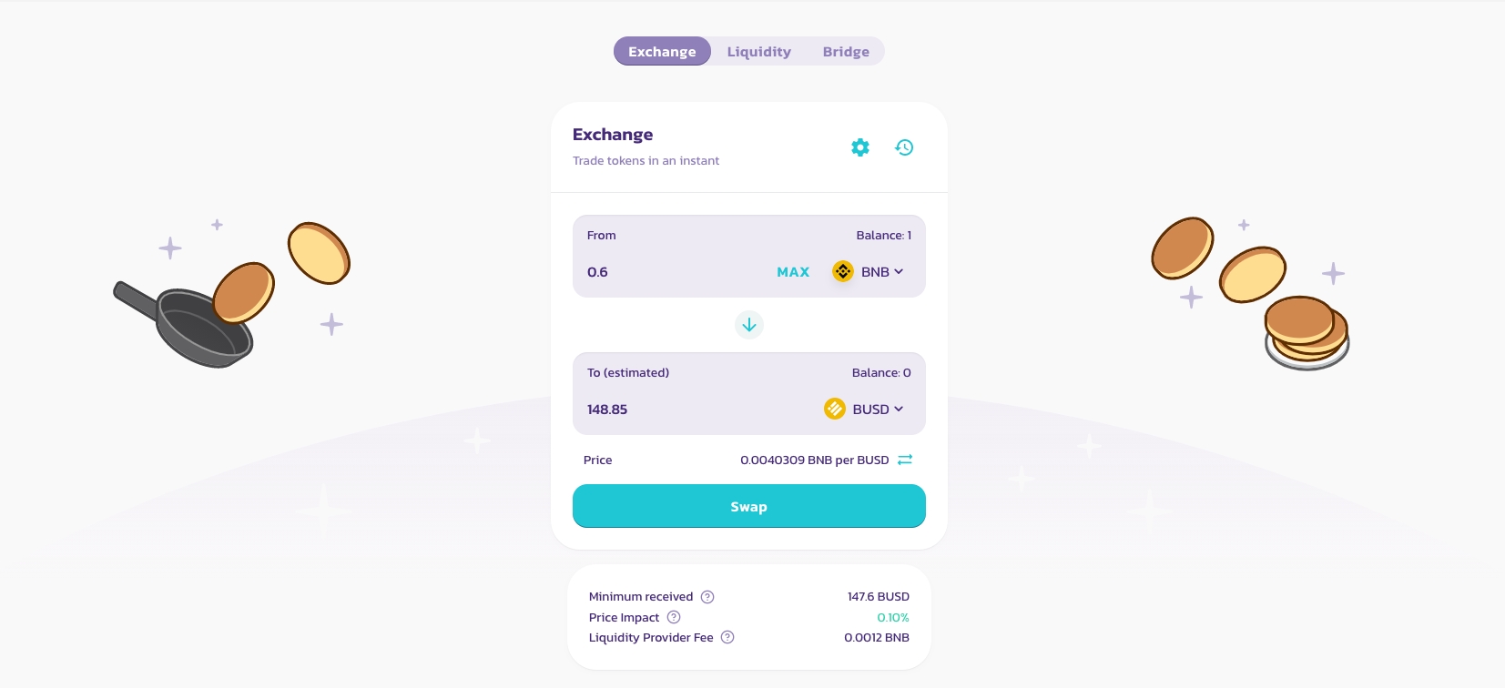 去PancakeSwap 交易所连接我的Metamask钱包后,我将0.6 BNB更改为BUSD。