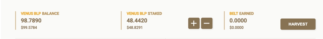 一旦开始进行流动性挖矿,您还可以在BELT EARNED部分中轻松查看BELT奖励并可分别收获。